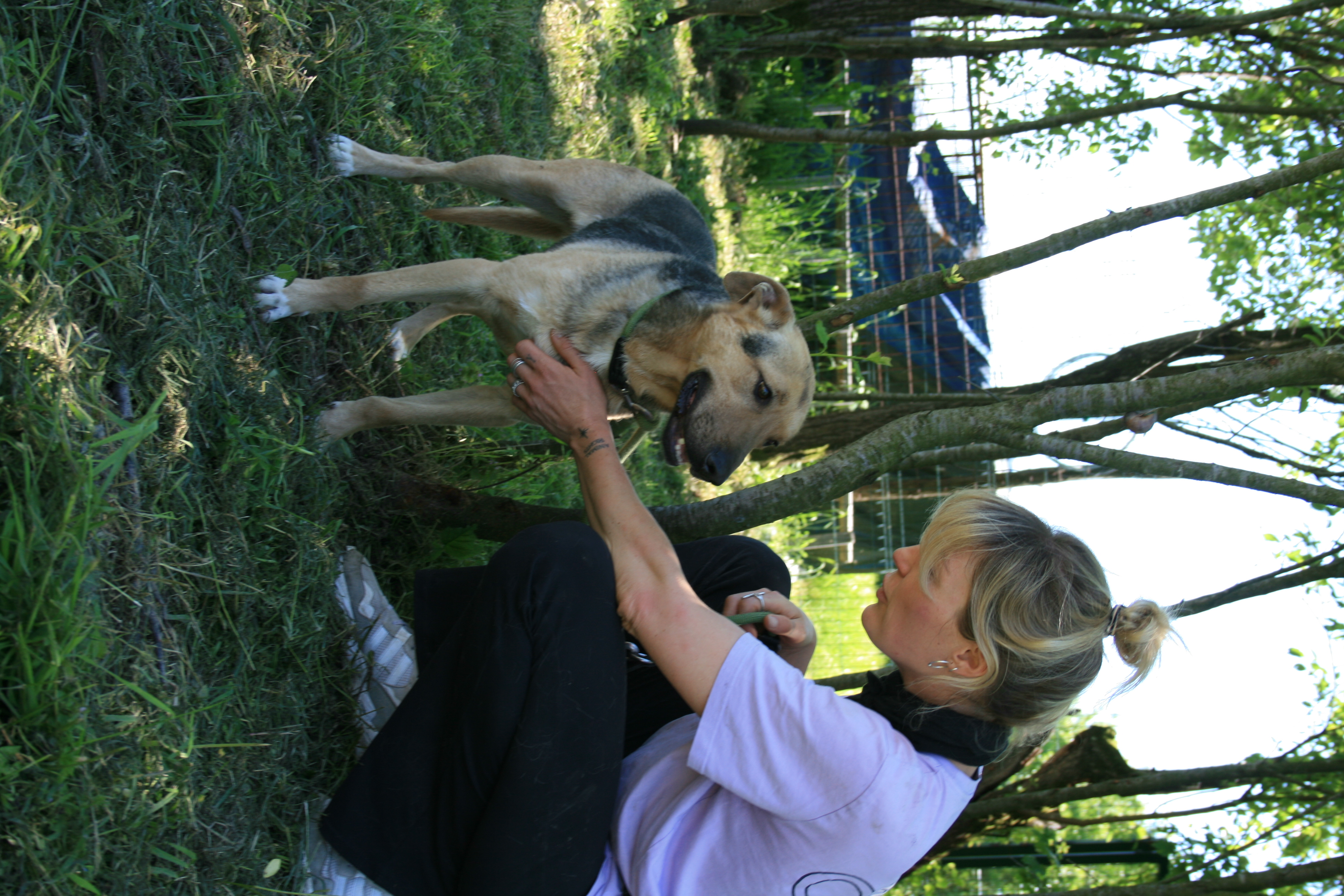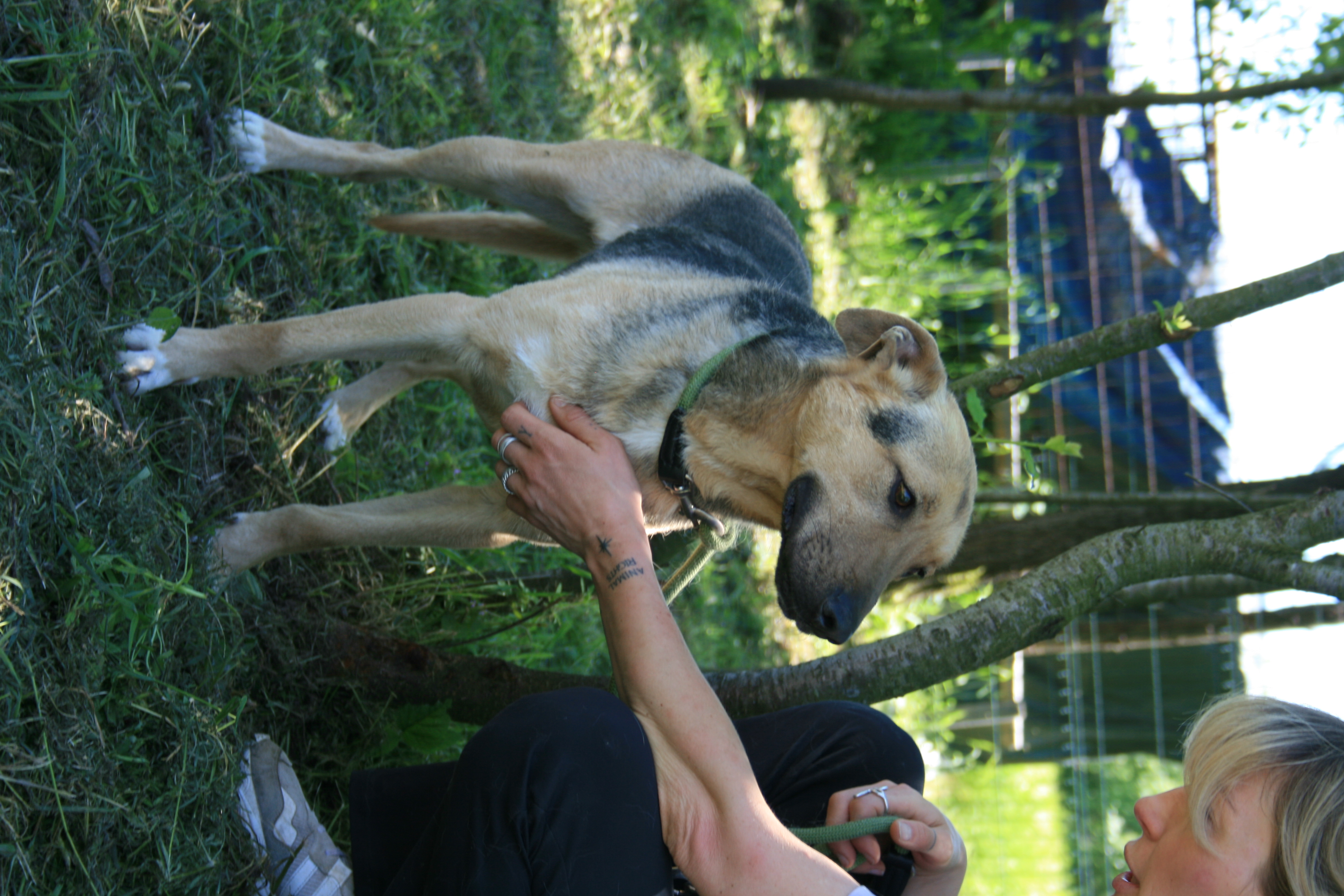 Fleka was abandoned as a puppy in front of a veterinary clinic with patchy fur. Next to him was a note saying that children had found him together with his sister and that they didn’t have the means to treat him. We were asked to take them in temporarily, but it turned out they stayed with us. Fleka is very affectionate and would be an ideal dog for any home. He gets along well with other dogs, is playful and cheerful